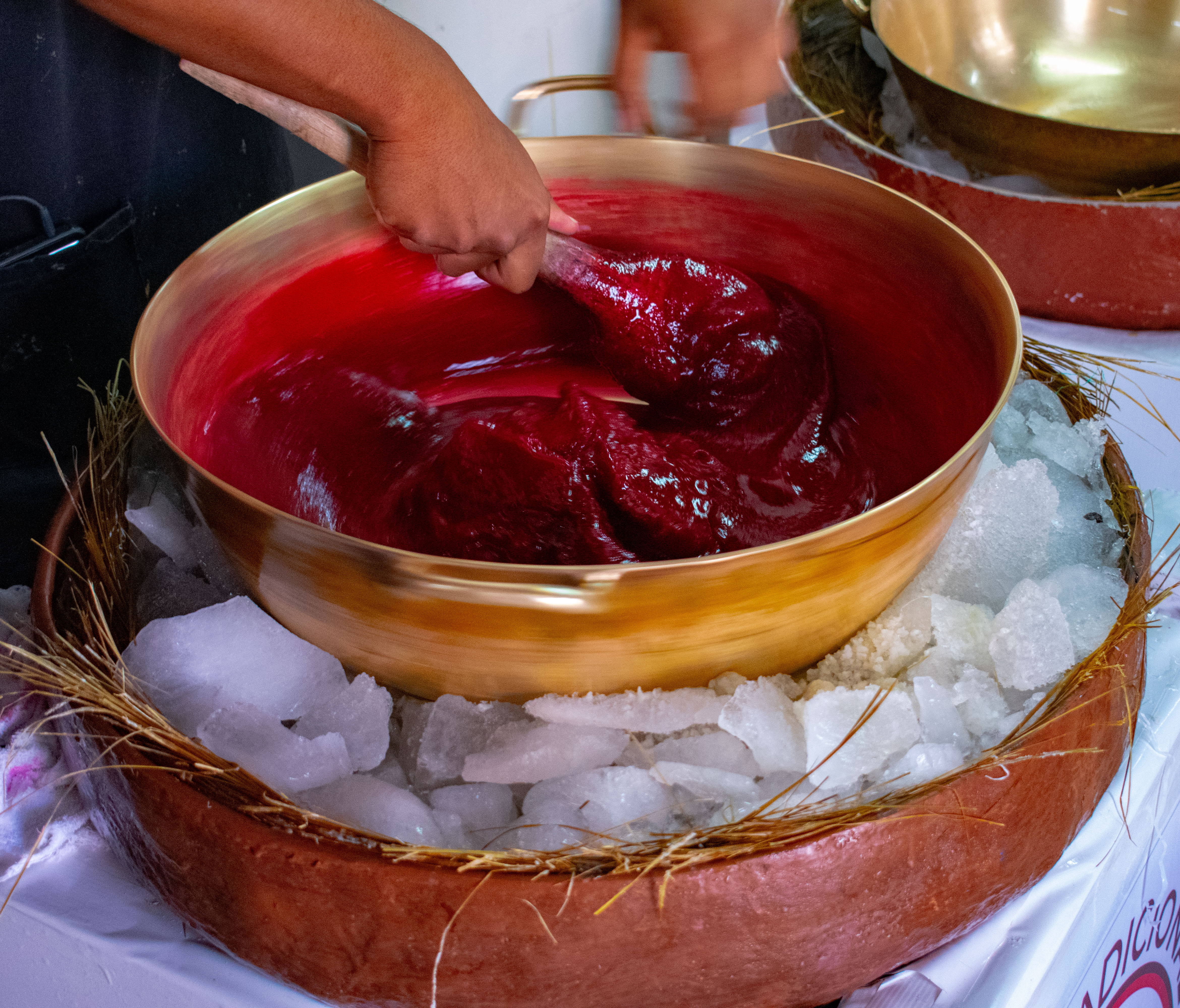 Los helados de paila son hechos con el jugo de frutas cultivadas en Imbabura y esmeraldas que llegan frescas por la vía Ibarra- San Lorenzo, el jugo previamente endulzado es puesto en una paila de bronce sobre paja, hielo y sal en grano, en donde se le da vueltas por al menos 25 minutos hasta que se congela el jugo, obteniendo una textura de helado suave y cremoso, sin formar cristales grandes de hielo, ni grumos.